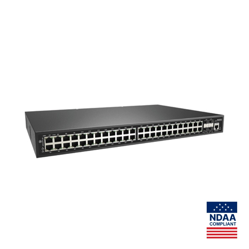 52 port gigabit managed poe switch (600W) ·48*10/100/1000M POE port,802.3af/at+4*10/100/1000M SFP fiber slot. ·Bandwidth: 368Gbps, MAC: 16K ·Function: QOS,STP/RSTP. IGMP. SNMP. WEB/CLI.VLAN ·Built-in power supply, compatible with 1U rack ·Fiber module excluded